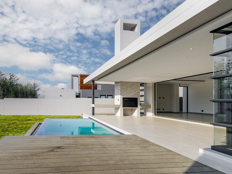Resort-style living in Eye of Africa Estate with sculptural contemporary architecture, covered entertainment terrace and lap pool — four en-suite bedrooms, designer kitchen and double garage.