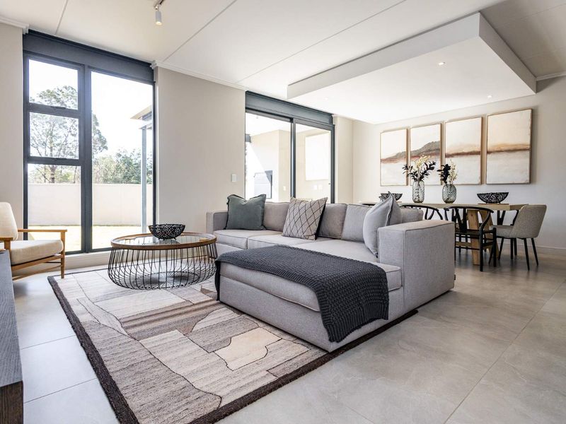 Relaxed single-storey living in Mirage at Eye of Africa Estate, elevated for shifting Johannesburg skyline views. Open-plan flow with private garden, scullery and double garage; three bedrooms, two baths.