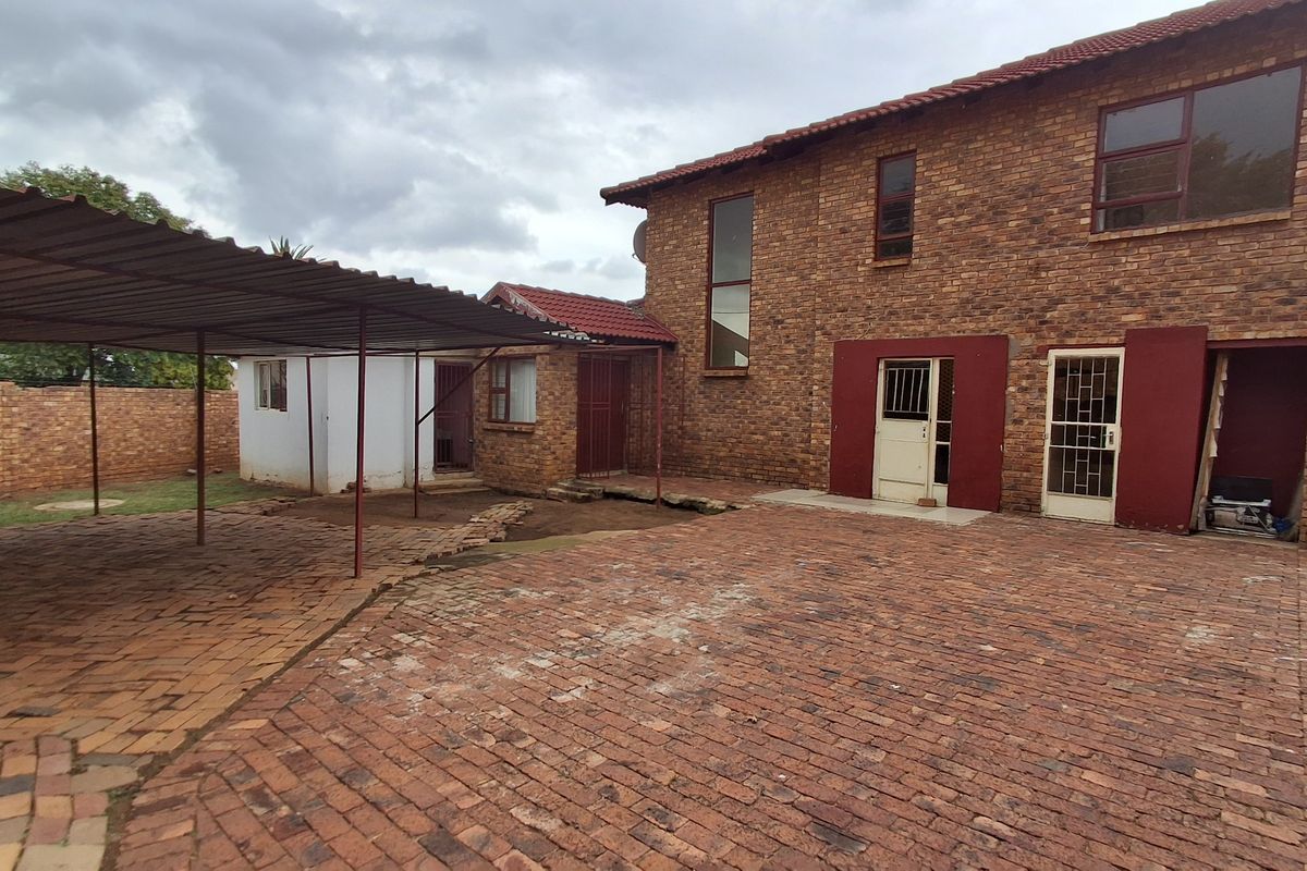 Family-friendly living in Dunnottar, Nigel — close to schools and shopping, this open-plan townhouse boasts a private yard with braai area, three bedrooms, two bathrooms and five covered carports.