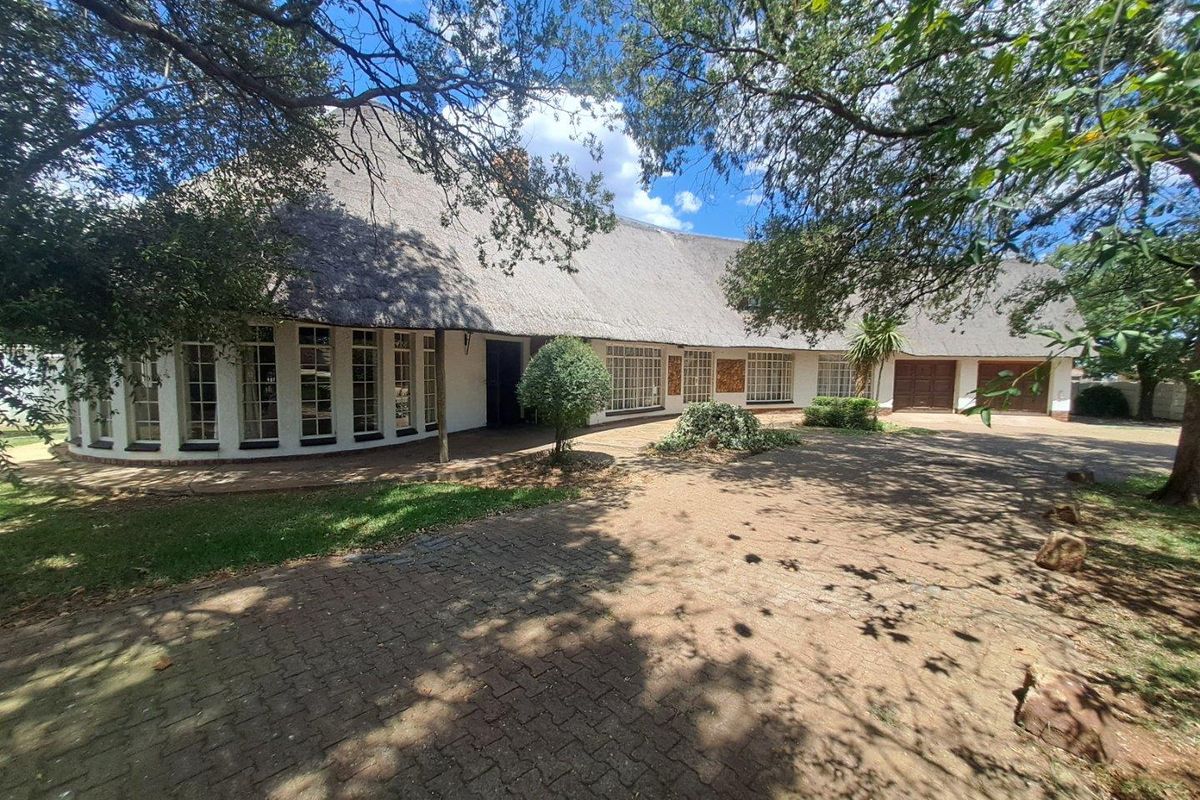 Relaxed country living with thatch-roof character, inviting open-plan living on level grounds, sparkling pool and separate flatlet — four bedrooms and two bathrooms.
