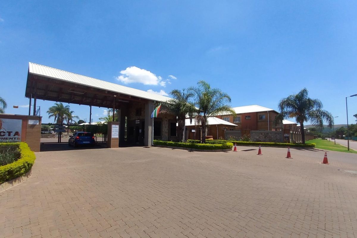 Secure family living in Grand West Estate, Andeon west of Pretoria, with 24-hour security and indoor-outdoor flow to a patio. Two bedrooms, one bathroom, covered parking.