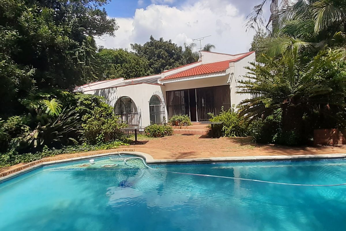 Generous family retreat for multigenerational living or guest-house use, near top schools, hospitals, embassies and R21/Gautrain bus route—tree-filled garden, pool and entertainment lapa; nine beds, seven baths, six parking.