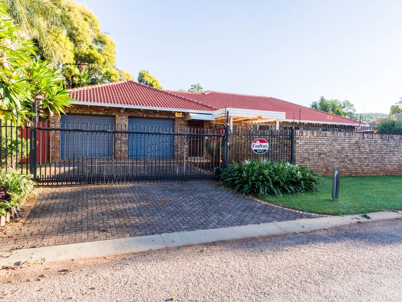 Effortless entertainer's lifestyle in Die Wilgers' peaceful complex, close to shops and the N1/N4. Enclosed braai/sun room with built-in gas braai and en‑suite Jacuzzi; three bedrooms and double garage.