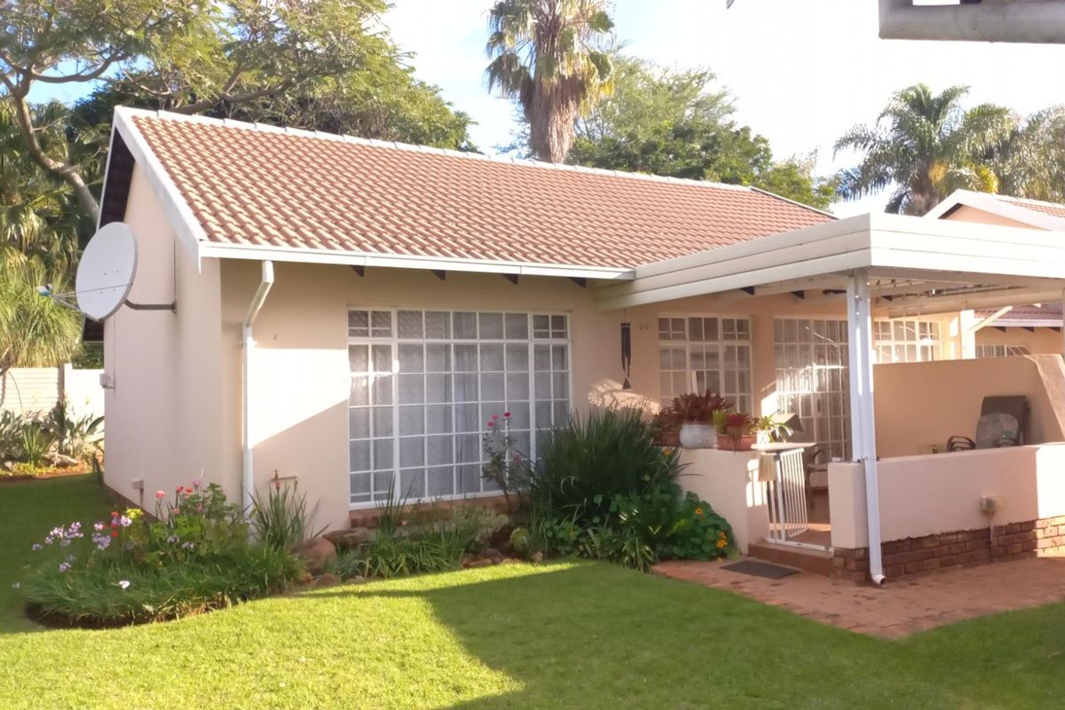 Easy, secure retirement living in Die Wilgers with sunny north-facing rooms and a verandah; includes two bedrooms, one bathroom and single garage, plus optional assisted services.