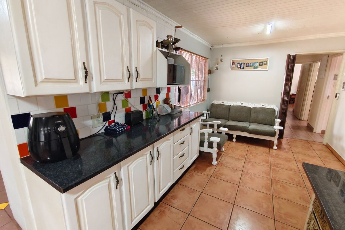 This lovely property offers comfortable family living on a generous corner stand. The home features three well-sized bedrooms and two bathrooms, ideal for everyday convenience. A welcoming lounge and separate dining area create warm, functional living spaces. The spacious kitchen includes a scullery and its own dining or lounge nook, perfect for casual family meals. Parking is well catered for with a double garage and a secure tandem carport. Outdoors, the property boasts a borehole with irrigation, ensuring a lush garden year-round, as well as a sparkling swimming pool and dedicated entertainment area for hosting family and friends. Additional value is provided by a Wendy house for storage and a second Wendy ideal for a domestic or family member, complete with its own bathroom. This versatile home offers space, comfort, and excellent outdoor features.