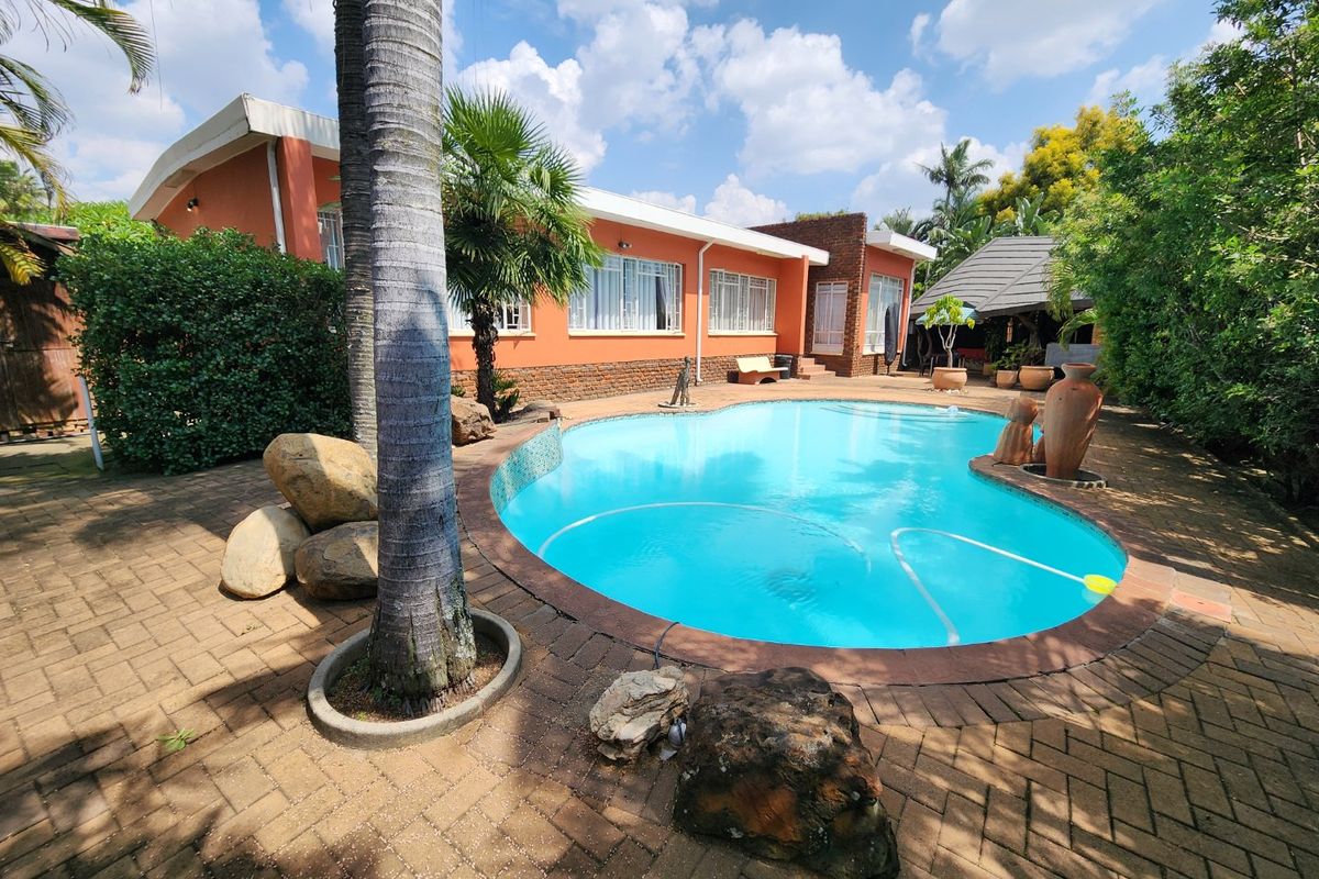 Parking is abundant, with a garage and three carports ensuring plenty of room for vehicles in a secure environment. The property’s tranquil garden is beautifully maintained and supported by a borehole, adding to its appeal and sustainability.