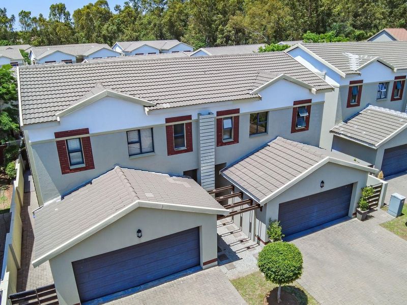 Tranquil estate living in Leopard Rock Estate with leafy patios and easy-maintenance garden; open-plan living, modern kitchen, fireplace, and double automated garage.