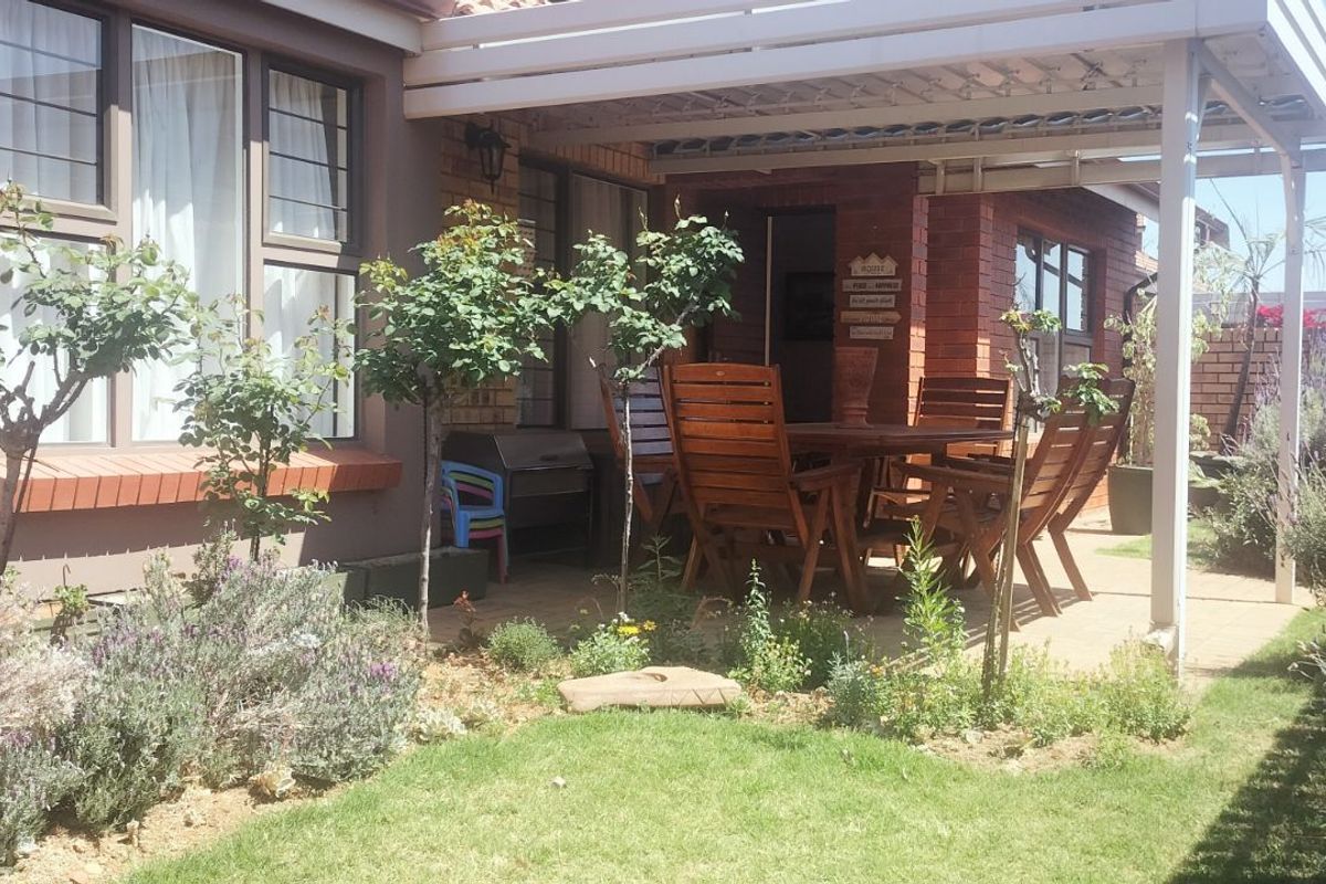 Relaxed retirement living in Equestria, Pretoria East, with onsite staff and eight meals monthly; light-filled open-plan spaces, private backyard and main bedroom with lounge and en-suite bath.