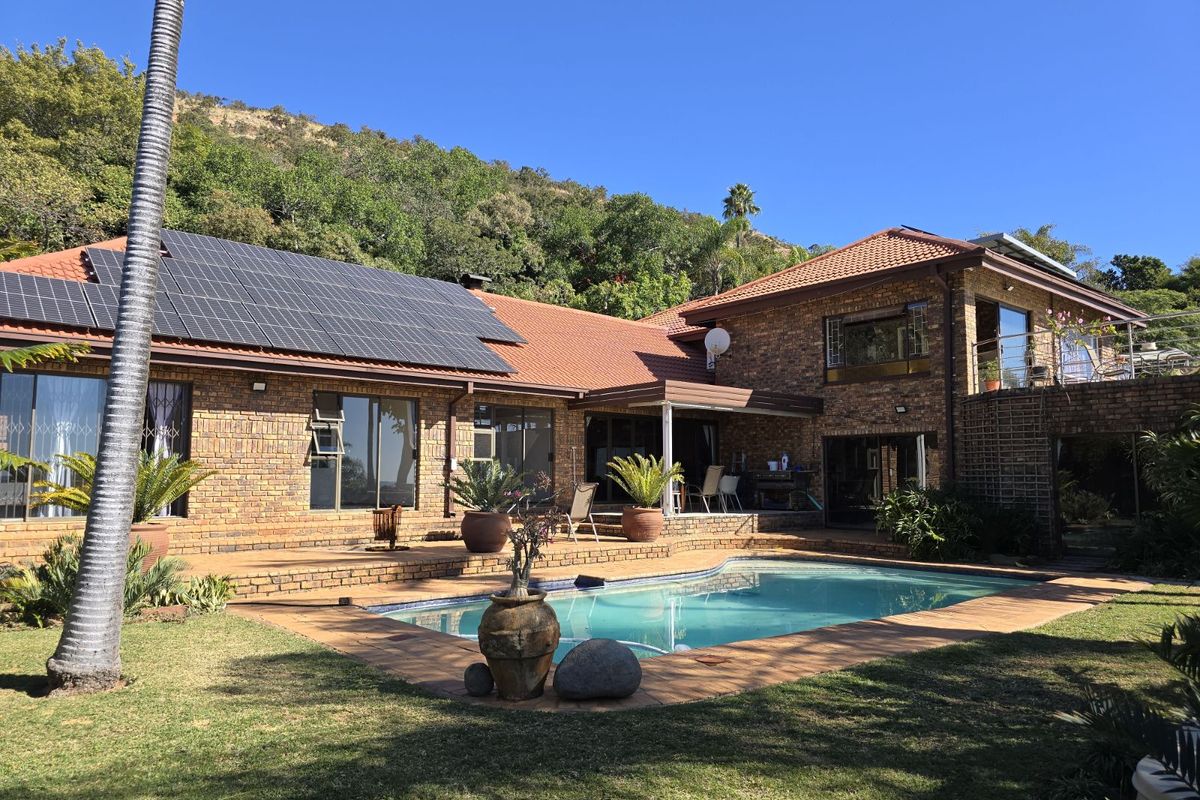 Entertainer's family home overlooking Pretoria North, ideal for work-and-play living — private pool and separate upstairs flat/office with balcony views, six bedrooms and three bathrooms.
