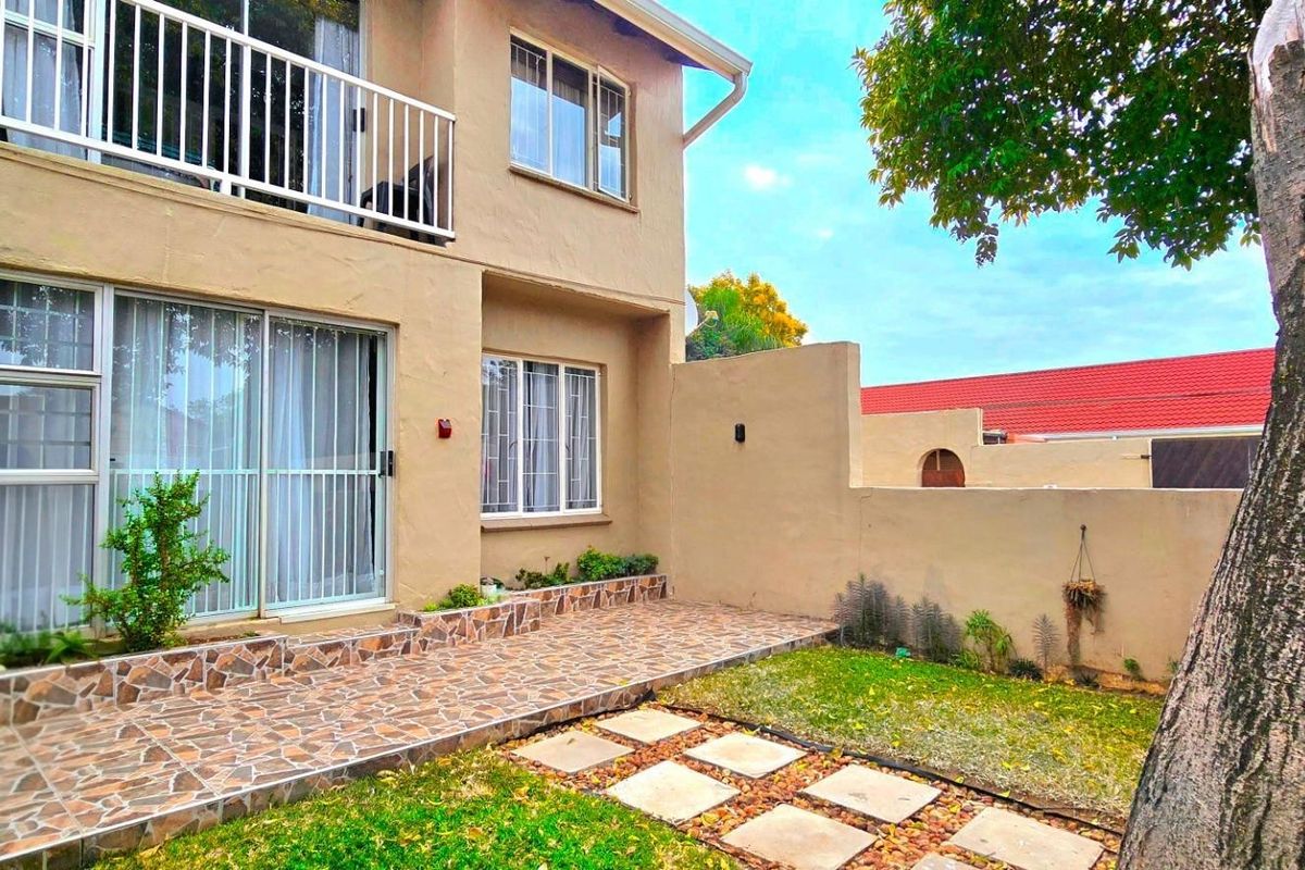 Entertain effortlessly in Garsfontein's peaceful Pretoria East suburb — undercover patio and private balcony with views. Modern stone-counter kitchen, three bedrooms, 1.5 bathrooms and double garage.