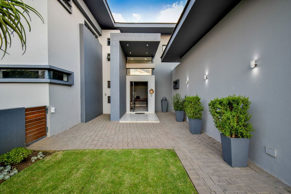 Entertainer's paradise in exclusive Lombardy Estate, minutes from Pretoria East schools and shops, with heated pool, expansive open-plan kitchen with long island, four ensuites and triple garage.