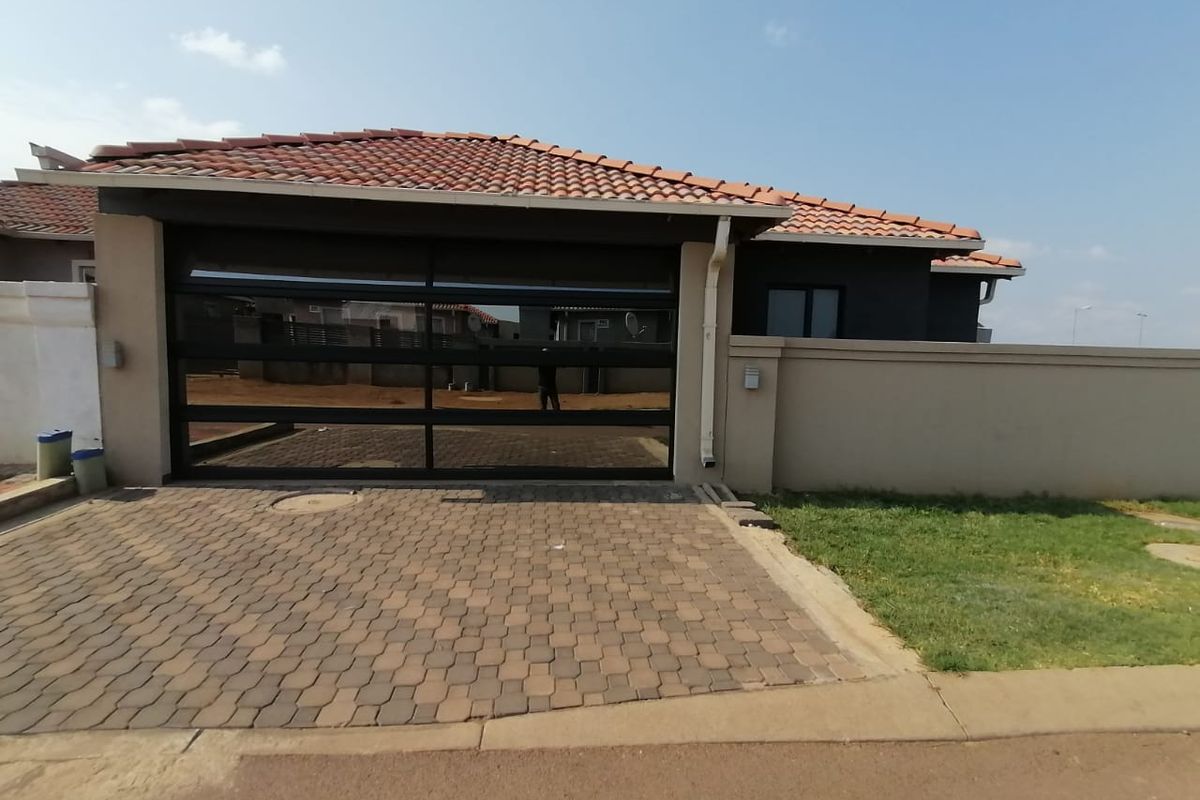 Entertainer-friendly corner home with sunny open yard and built-in braai in secure 24-hour complex near schools, shops and N4 — three bedrooms, two bathrooms, double garage.