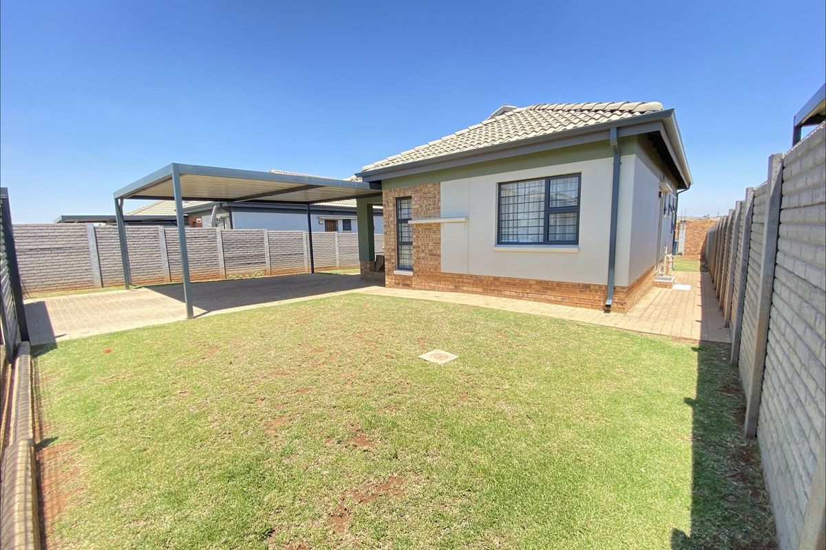 Relaxed family living in secure Lotus Gardens, Pretoria West — bright open-plan living, private garden, three bedrooms, two bathrooms and double covered parking.
