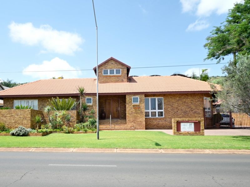 Entertainer's live-work home in Magalieskruin near top schools and shops, featuring business-rights with dedicated office, reception and boardroom, wrap-around balcony, four bedrooms, 3.5 baths.