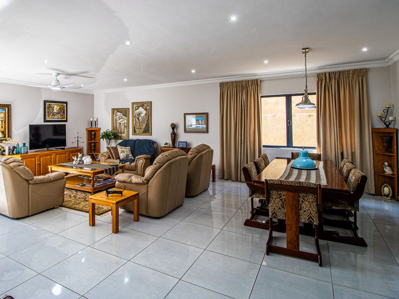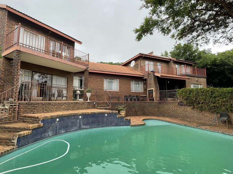 Entertainer's oasis in Magalieskruin with expansive garden and pool, flowing indoor-outdoor living; five bedrooms, three bathrooms and three garages for family convenience.