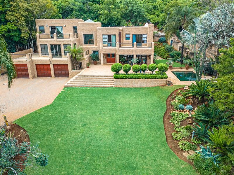 Entertainer's retreat on Magaliesberg northern slopes, minutes from Kolonnade, Wonderboom Airport and Dinokeng Reserve, with sweeping views, pool, landscaped garden, guesthouse zoning, ten en-suite bedrooms.