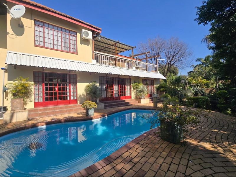 Entertainer's paradise in Montana Park, with a veranda and jacuzzi overlooking pool and lapa with built-in braai. Spacious double-storey layout includes five bedrooms, three bathrooms and double garage.