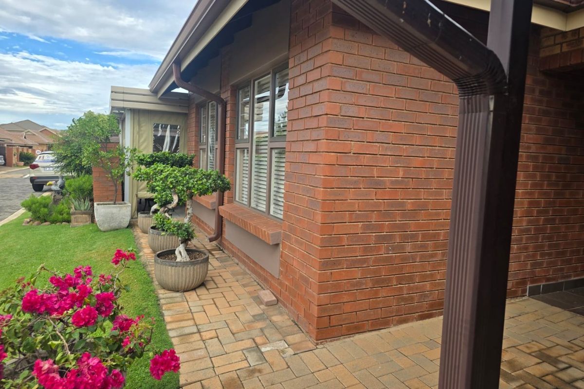 A door from the lounge opens onto a delightful patio, complete with roll-down canvas for added comfort and privacy. The property includes a double garage with additional built-in cupboards and a motorised door, as well as a double carport for extra parking.