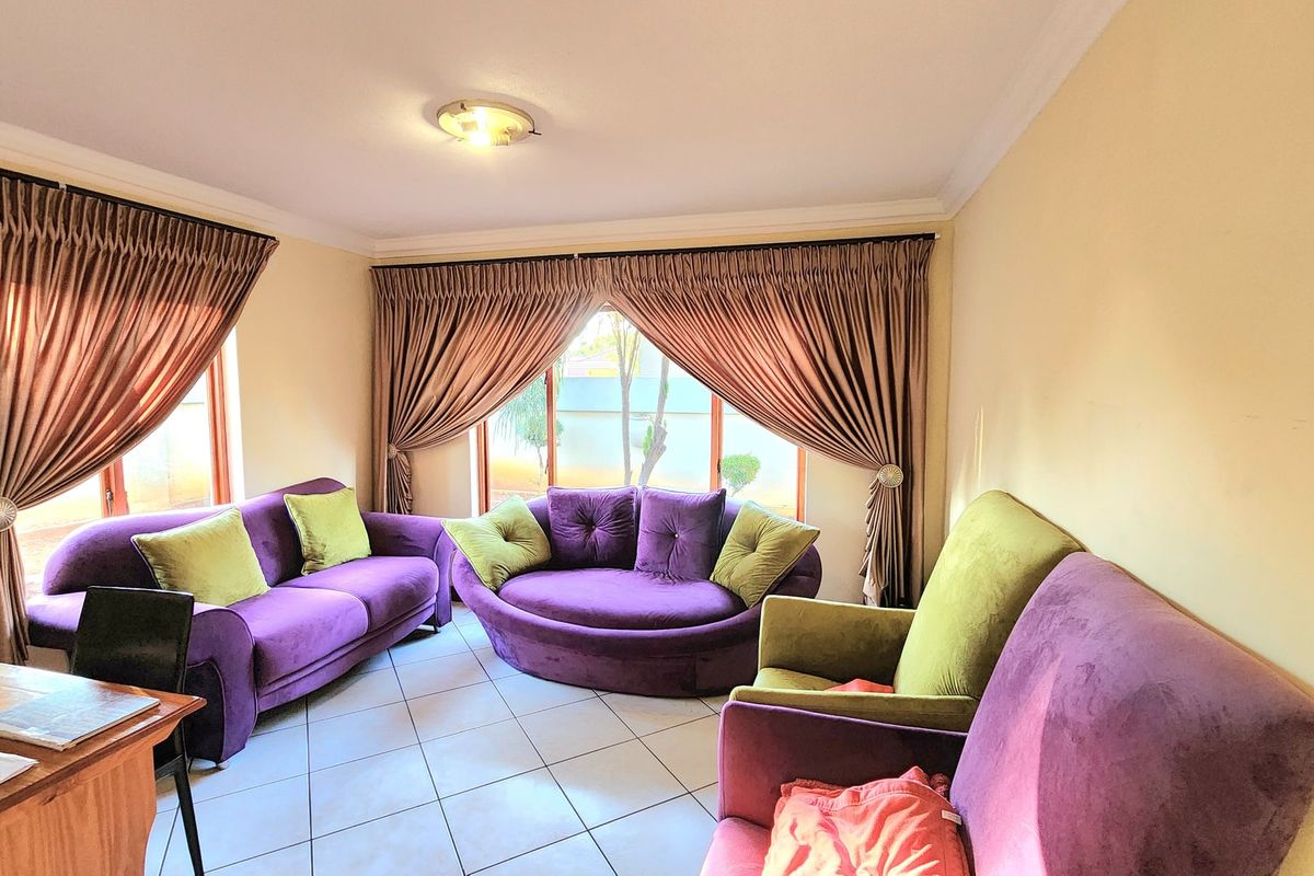 This spacious double-storey family home offers comfortable living in a secure estate, just 2km from Kolonnade Retail Park and Kolonnade Shopping Centre. Downstairs features include a double-door garage, private lounge, guest toilet, and a spacious open-plan living and dining area. The modern kitchen and separate scullery are fitted with stylish finishes and offer ample cupboard space. Upstairs, you’ll find two large bedrooms sharing a full bathroom, a cosy pyjama lounge, and a well-sized main bedroom with a walk-in closet, full en-suite bathroom, and private balcony. Outdoor living is a highlight, with a covered patio, built-in braai, swimming pool, and a spacious garden – ideal for entertaining. The property also includes a flatlet with its own bedroom and living area, perfect for extended family or rental use. Property Features: 4 Bedrooms (including flatlet) 3.5 Bathrooms (including flatlet) Open-plan lounge, dining & kitchen Modern kitchen with scullery Private lounge & upstairs PJ lounge Double-door garage Covered patio with built-in braai Swimming pool & large garden Separate flatlet with living area & bedroom Secure estate living This home offers a great blend of space, functionality, and lifestyle in a well-located residential estate