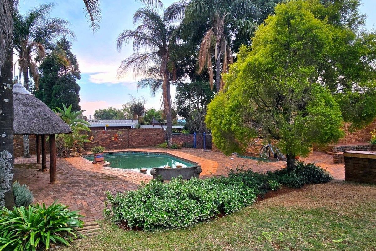 Entertain effortlessly in Monument Park Security Estate — spacious single-storey home near the University of Pretoria and malls, with poolside lapa and fire pit; five bedrooms, four bathrooms, double garage.