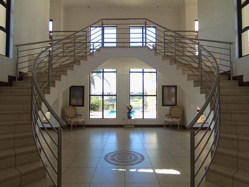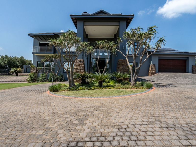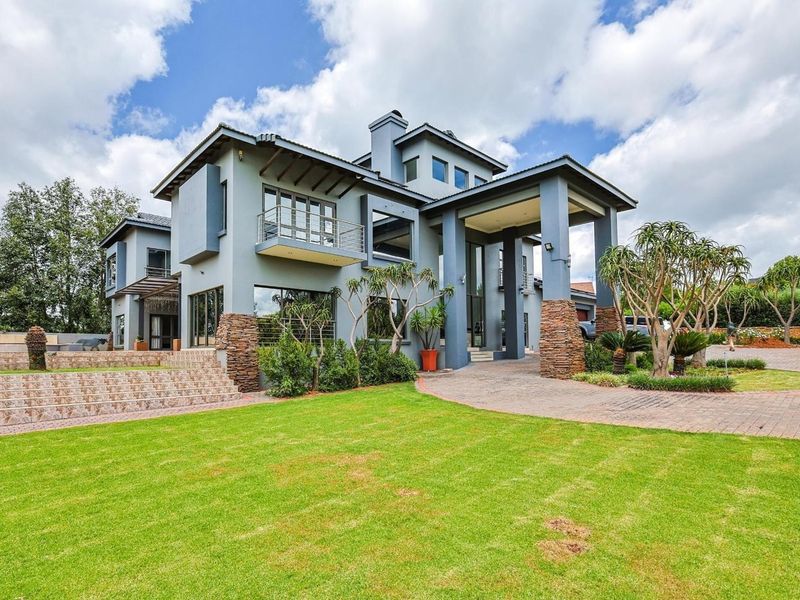 Entertainer's retreat in Mooikloof, Pretoria — exclusive estate living with private park‑like gardens and pool, expansive entertaining patios, five en‑suite bedrooms and six garages.