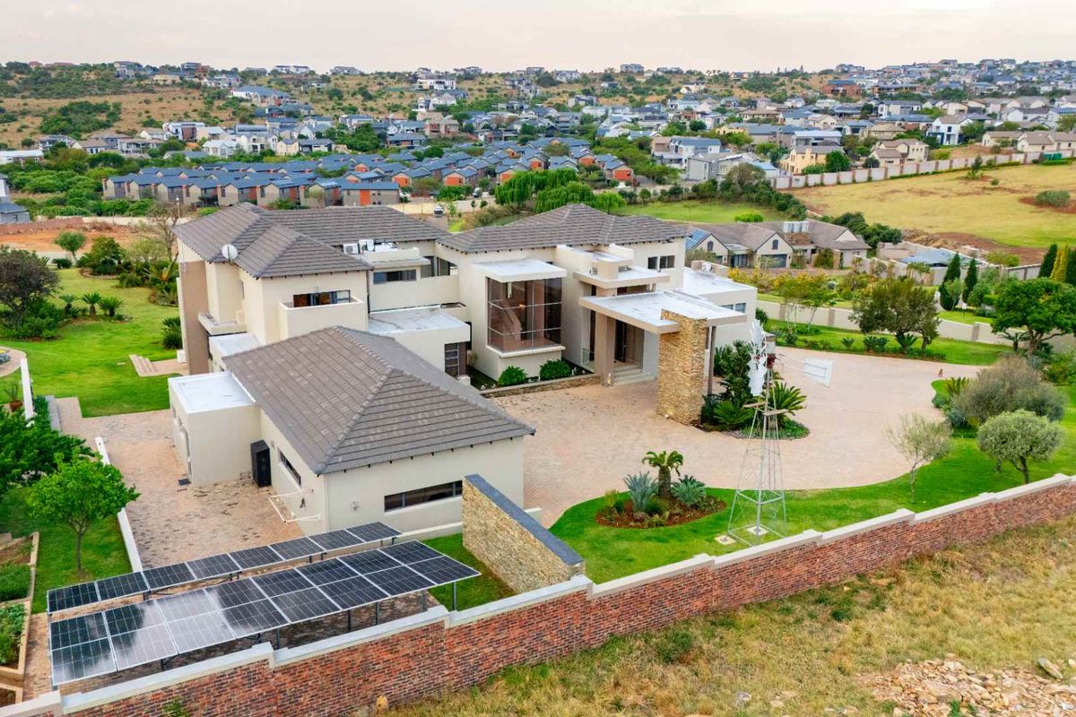 Entertainer's eco-luxe retreat on expansive landscaped grounds with panoramic views, a massive patio with charcoal braai and heated pool. Five bedrooms, five baths, ten-car garage.