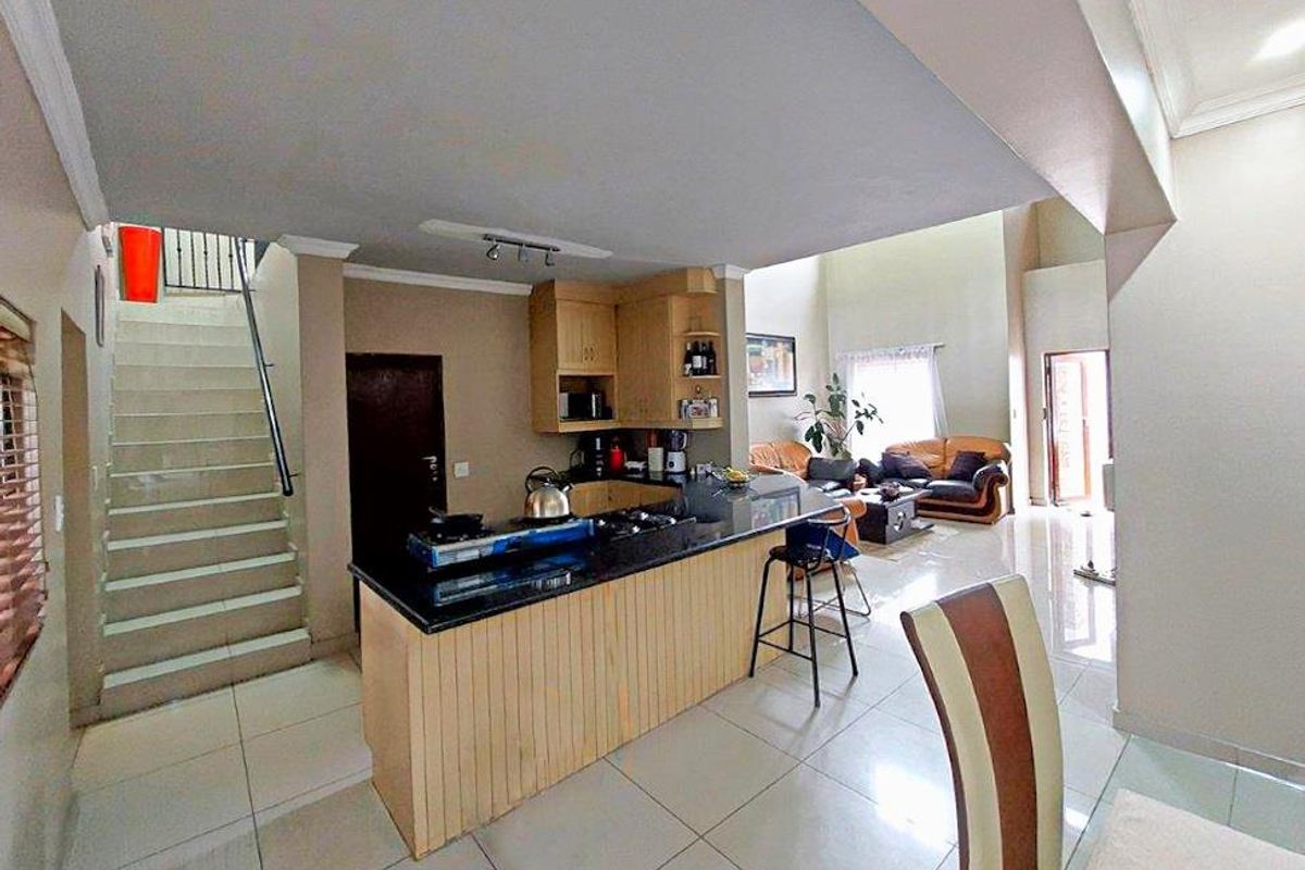 Downstairs living areas lead to stoep with built-in braai and small wrap around garden.