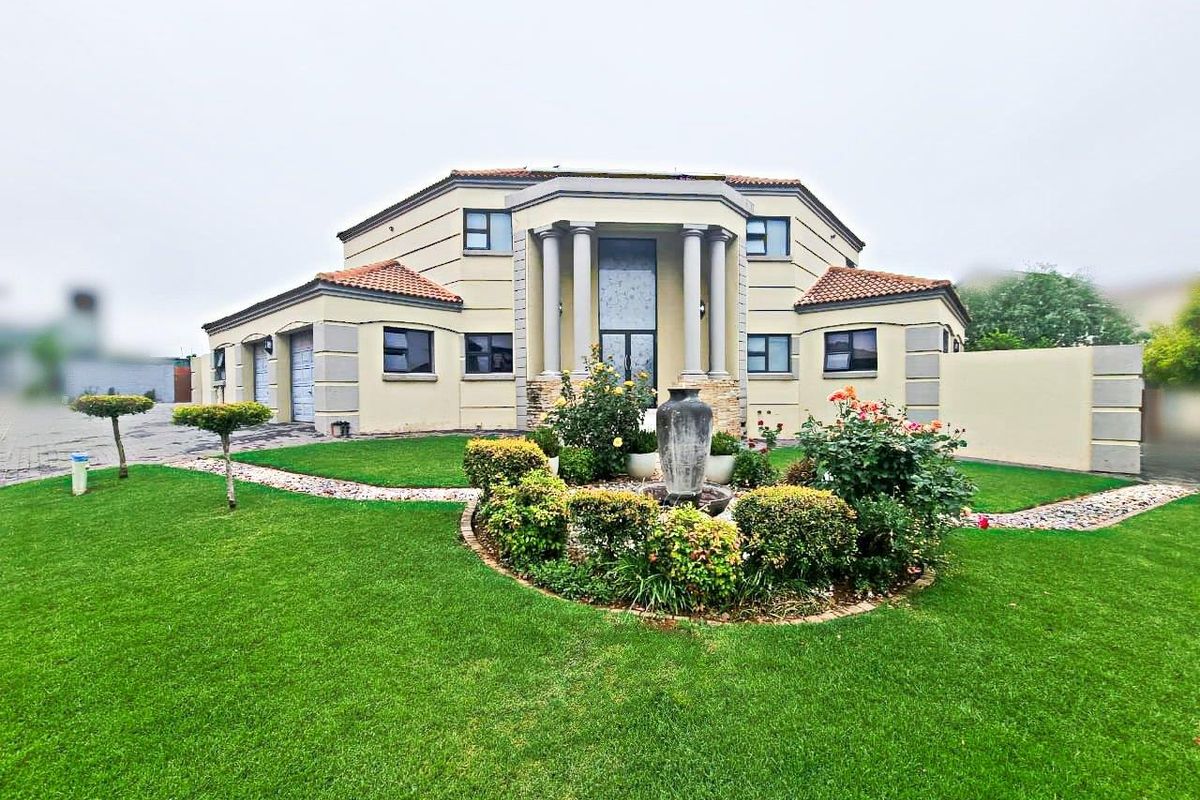 Family-focused entertainer in Boardwalk-Olympus East Pretoria, close to Woodlands Mall and Menlyn Maine, featuring an enclosed patio with built-in braai, pool, five bedrooms, 3.5 bathrooms and double garage.