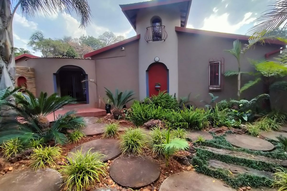 Entertainer's paradise just below the Magalies in Pretoria North, offering dual‑living flexibility, sparkling pool, lapa and built‑in bar amid lush tropical gardens — six bedrooms, multiple garages.
