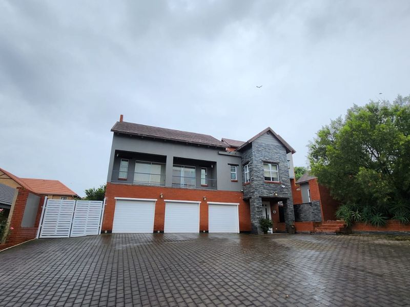 Entertain effortlessly in Rietvlei Ridge Environmental Estate — enclosed braai room anchors outdoor living, while four bedrooms, four bathrooms and three garages offer family convenience.