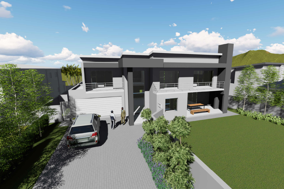 Family-friendly eco living in Roodepark Eco Estate with seamless indoor-outdoor flow, modern kitchen and covered patio with built-in braai overlooking the garden; four bedrooms, 3.5 baths.