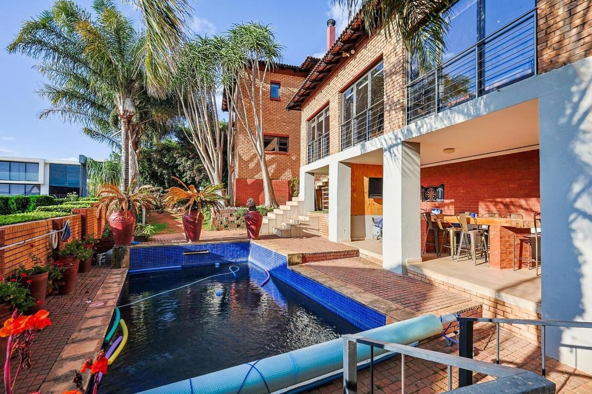 Family-focused estate living in The Wilds, close to top schools and shops, with a poolside entertainment pavilion and built-in braai — five bedrooms, 4.5 baths, four garages.