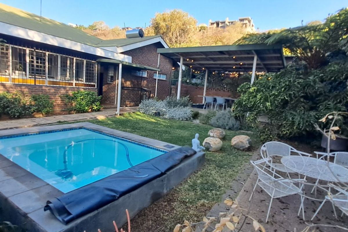 This fully walled, well-kept property is set against Pierneef Ridge in a secure cul-de-sac. The property offers two entrances, one leading to the Main house and the other to a separate bachelor cottage.