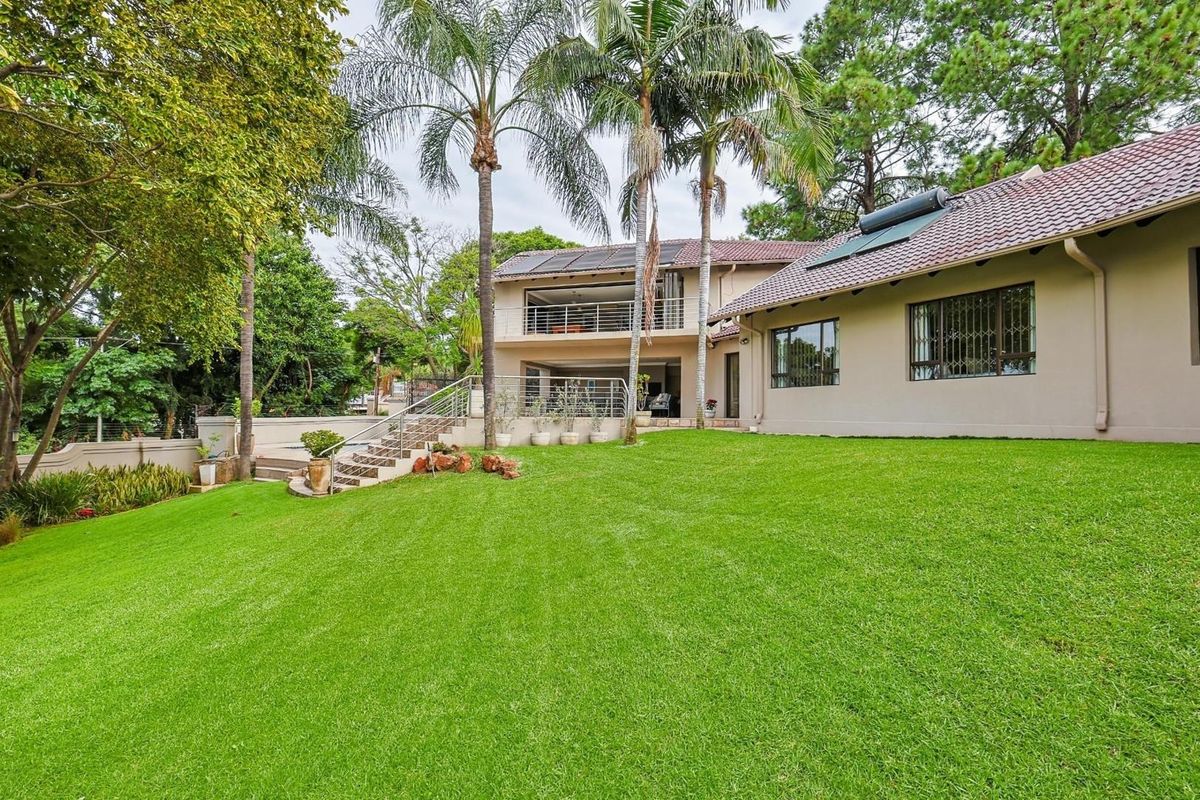 Entertainer's paradise in Waterkloof, perched on a hill with panoramic Eastern Pretoria views; double-storey entertainment pavilion, solar-heated pool and separate garden cottage — six beds, eight baths, three garages.