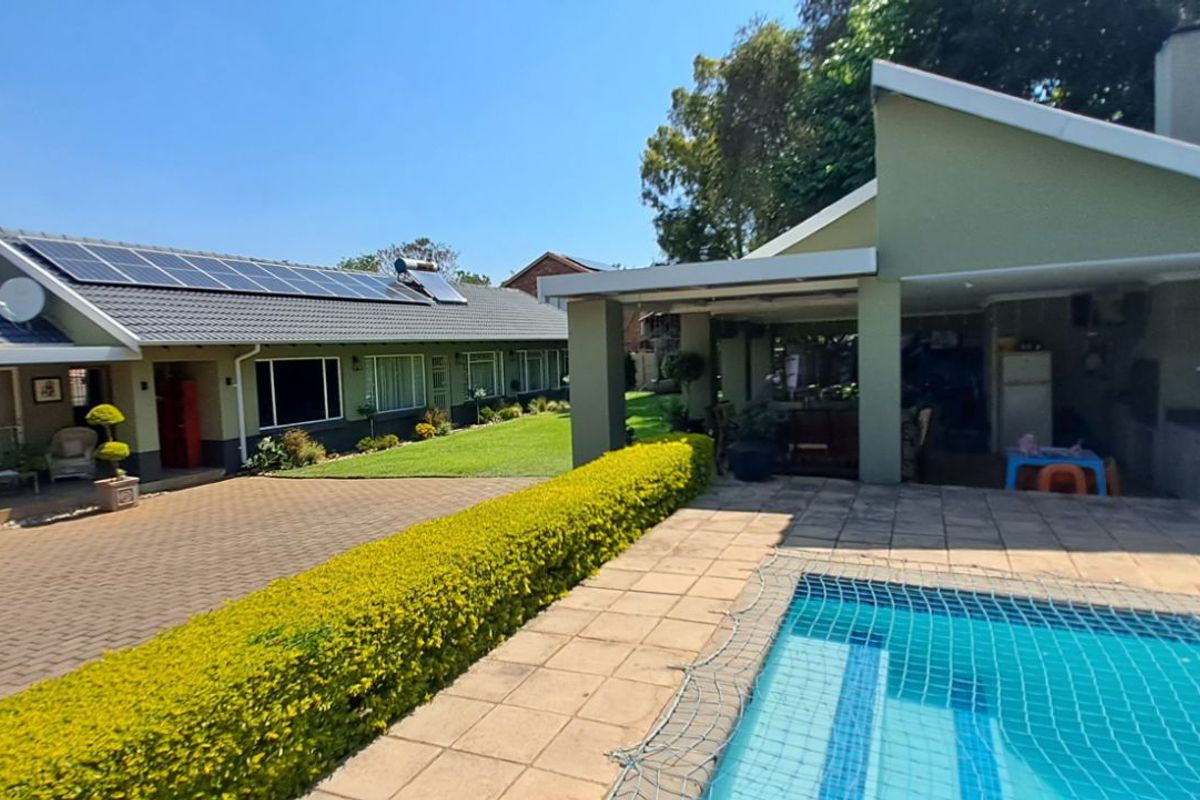 Relaxed, elegant living in Waverley within walking distance of schools and Waverley Plaza—double-level entertainment area overlooks landscaped garden and private pool with built-in braai; four bedrooms, two bathrooms.