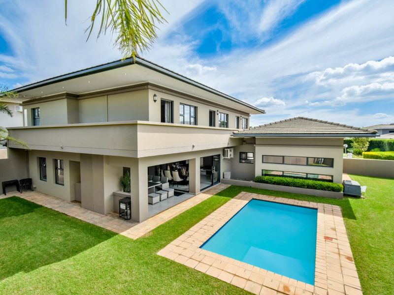 Entertain effortlessly in Lombardy Estate — resort-style pool, private garden and gas-braai patio, walking trails, lakes, 1km to schools and shops; four en-suite bedrooms, double garage.