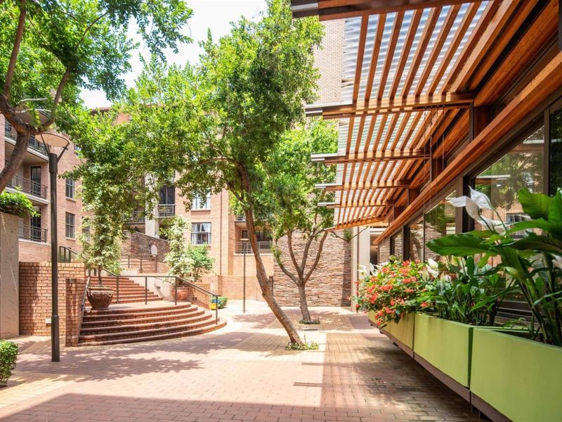 School-friendly location near Pretoria Boys High, Crawford College, Affies and UP; architect-designed home centered on a sunlit courtyard, jacaranda garden, pool and outside fireplace. Three bedrooms, two baths, double garage.