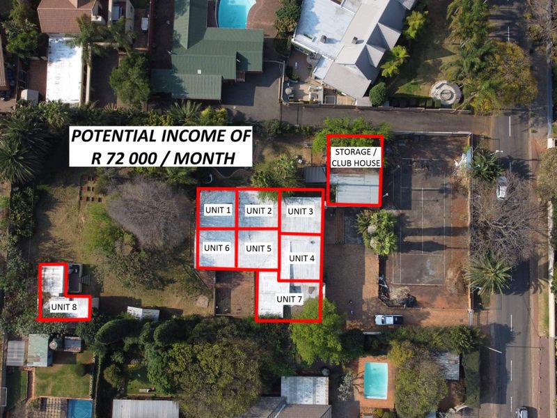 Tree-lined Fairland opportunity on a 2,974m² stand — spacious family home with pool and one‑bed cottage, ideal for immediate living or rezoning to eight townhouses.