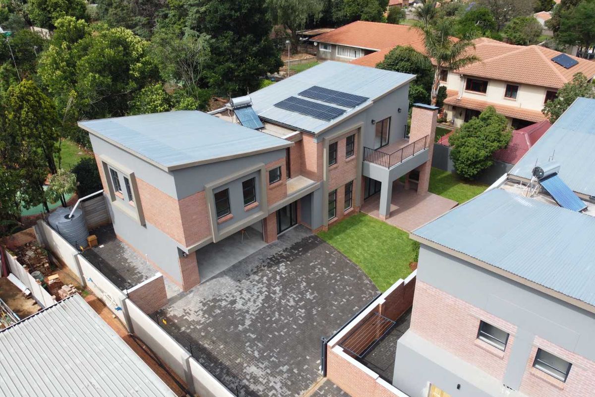 Live in light-filled contemporary family comfort in a peaceful neighbourhood, with open-plan kitchen and patio braai, three en-suite bedrooms, double garage and solar rainwater harvesting.