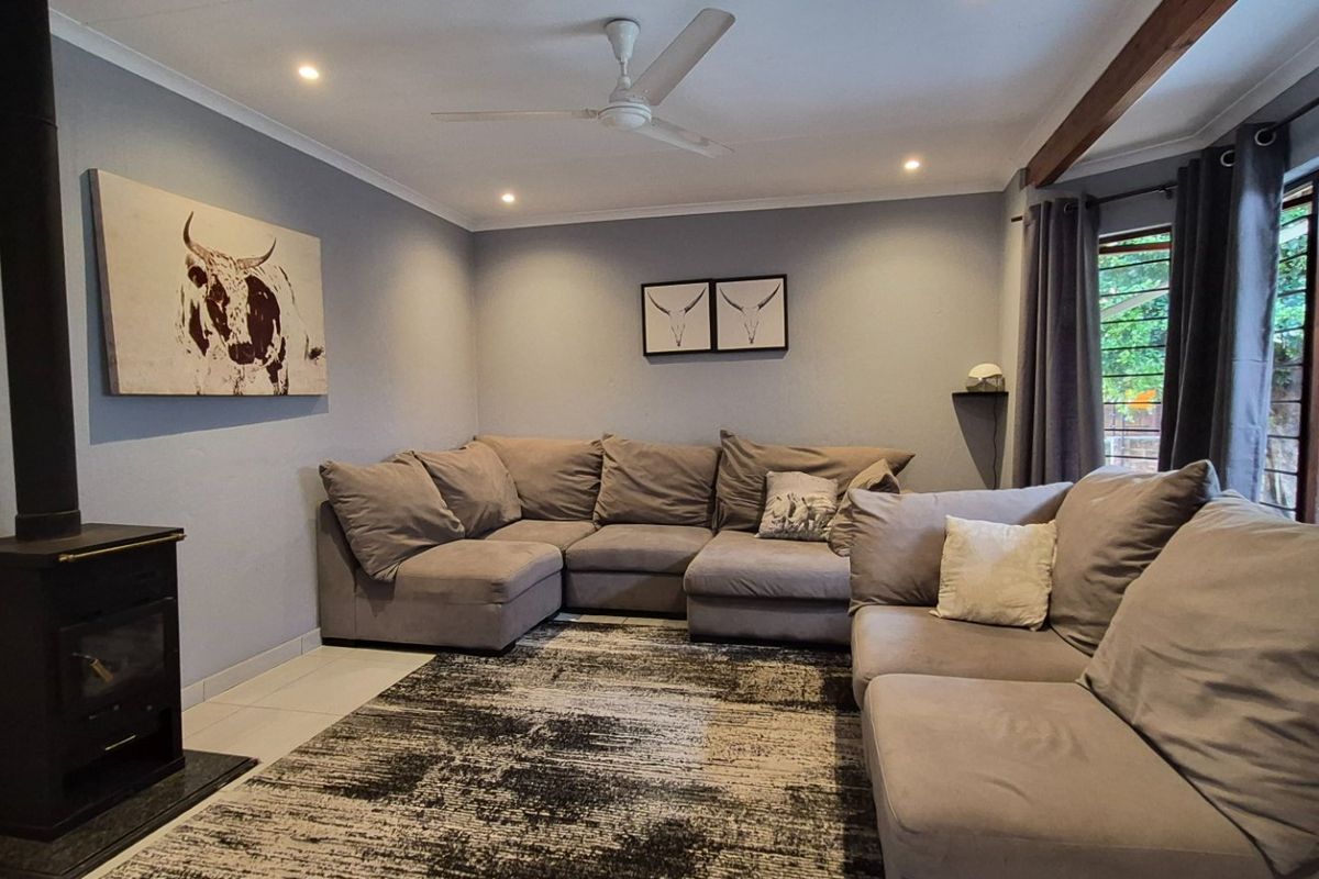 Relaxed family living in sought-after Jukskei Park, secure access-controlled complex near schools and shops. Entertain in a converted bar flowing to a private braai garden; three beds, two baths.