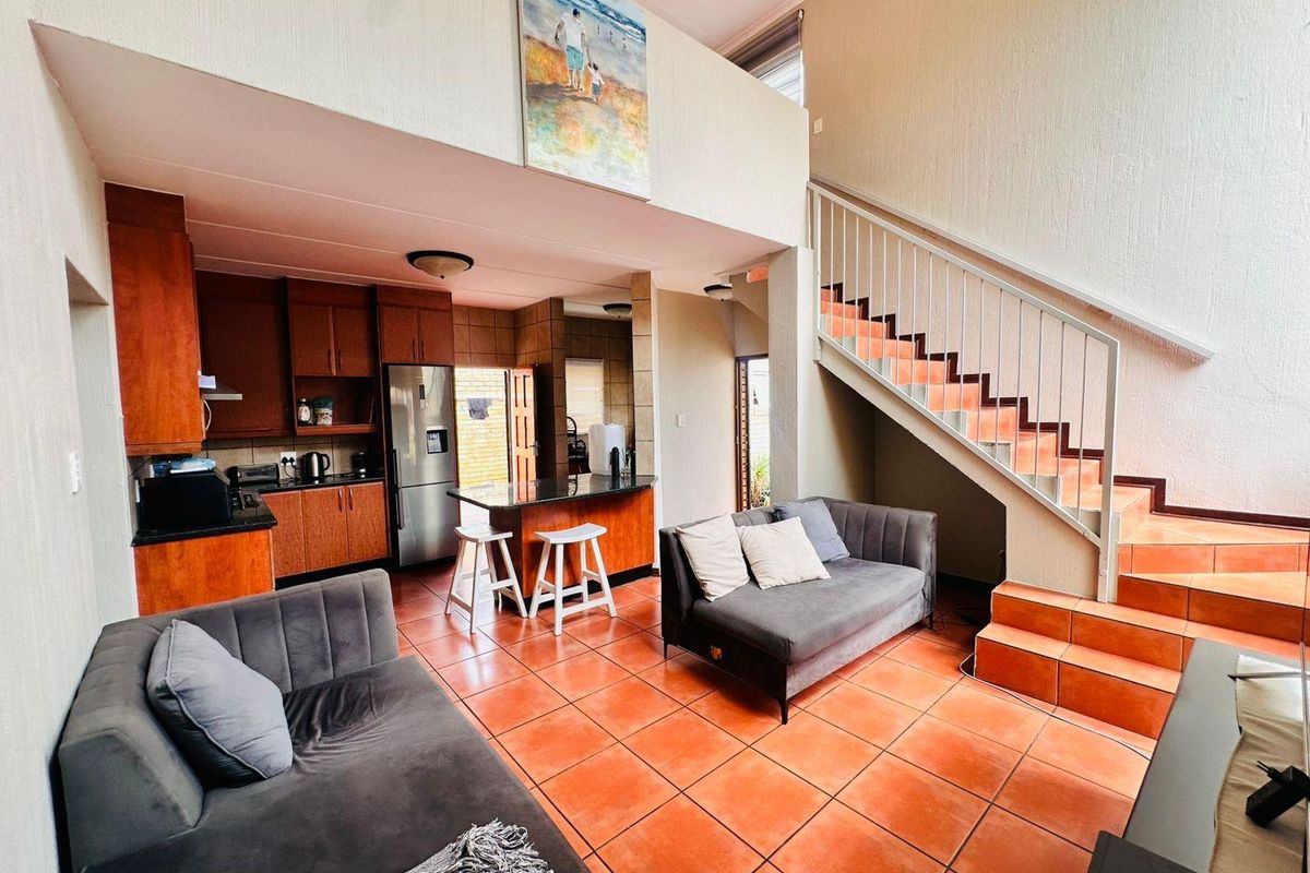 Enjoy relaxed Northriding/Noordhang living with seamless indoor-outdoor flow and flexible loft — upstairs balcony with built-in braai, two bedrooms, two bathrooms and double garage.
