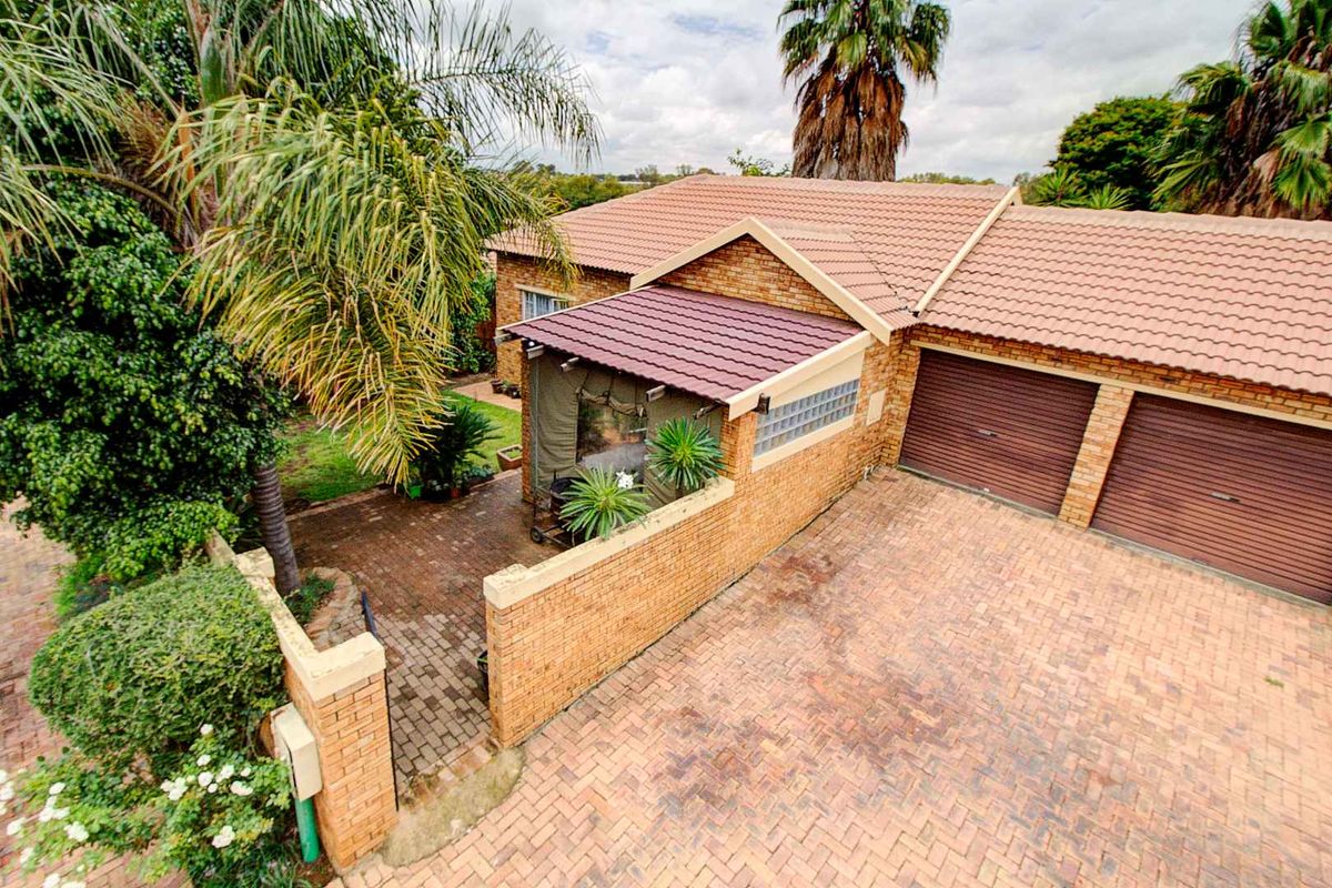 Three-bedroom, two-bathroom townhouse with double garage and 128 m² floor size. Pet-friendly garden and backup inverter included.