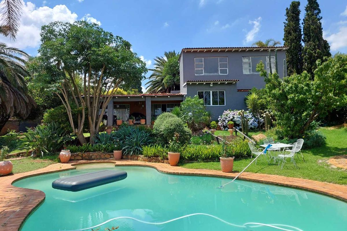 Experience peaceful mountain-top living in Northcliff Ridge Ecopark with lush garden and pool, plus an income-producing cottage/music studio above the double garage; three bedrooms, 2.5 baths.
