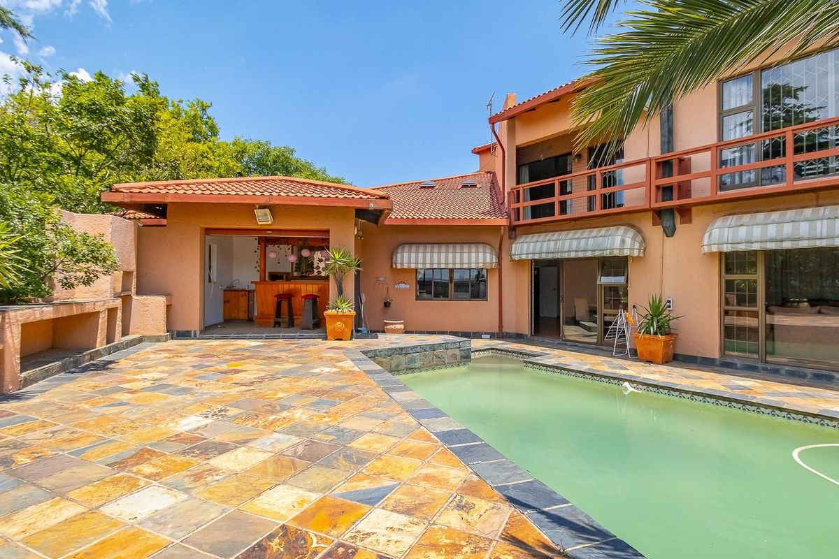 Entertainer's family home in Northcliff, Randburg — sunny south-facing garden and pool, plus a loft office and built-in bar. Three bedrooms, 3.5 bathrooms, four garages.