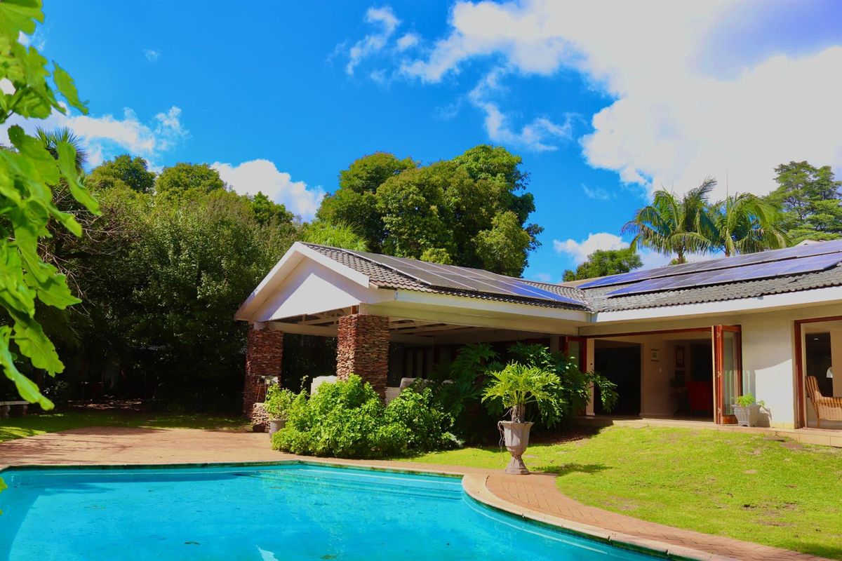 Ideal for multi-generational living or investors, this 2,360 m² garden oasis features a 4-bed main residence plus two independent cottages, swimming pool, solar and borehole.