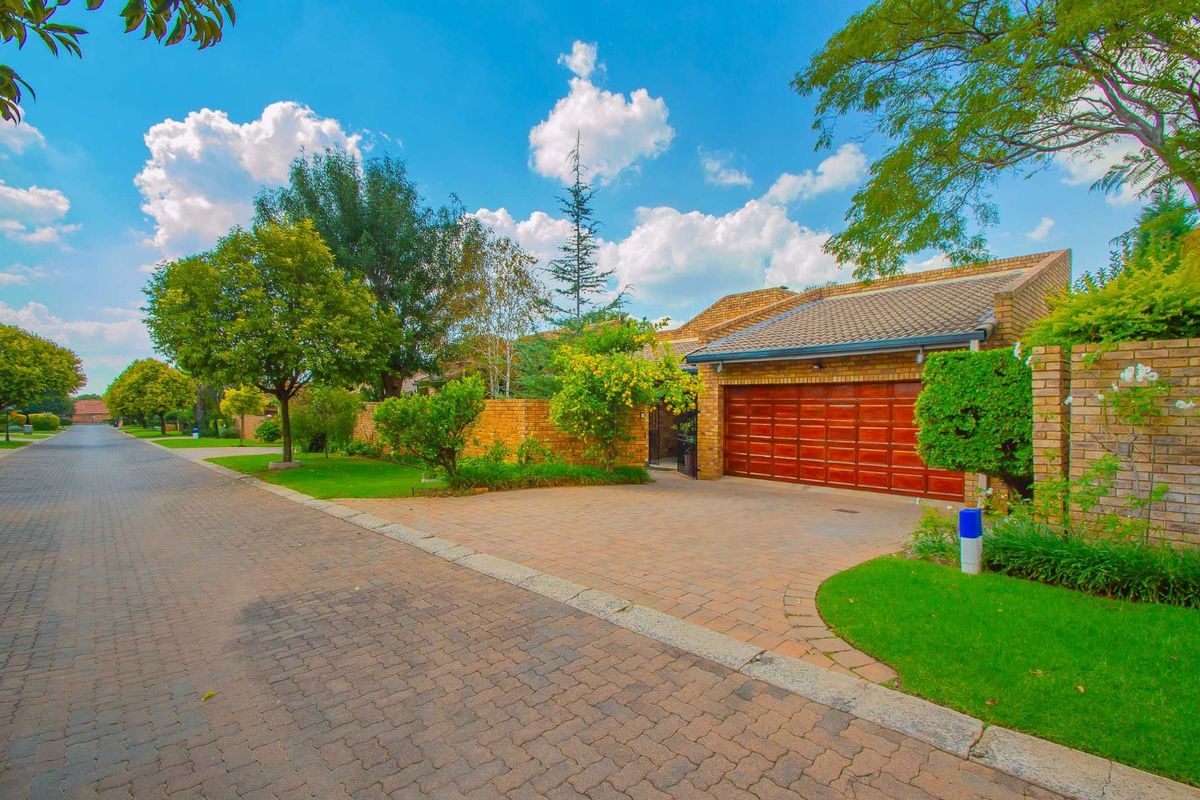 Effortless family entertaining in Escada Estate, Randpark Ridge — covered louvre patio overlooking pool and jacuzzi, indoor fireplace, modern granite kitchen; three bedrooms, two bathrooms and double garage.