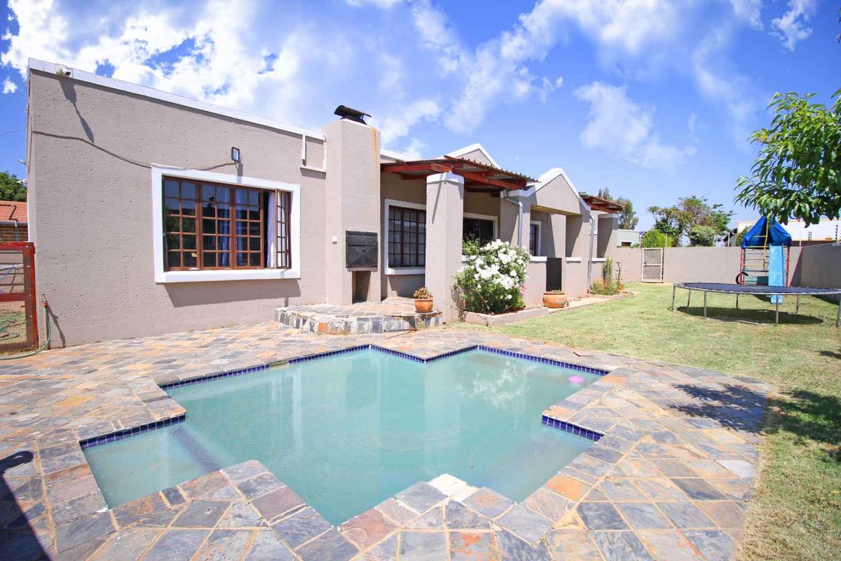 Entertain effortlessly on the stoep with built-in braai and small pool in a well-managed, secure complex — three bedrooms, two bathrooms and a double garage for convenience.