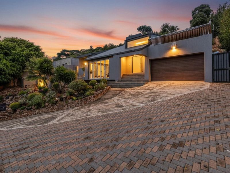Ridge-top living on prestigious Northcliff Ridge with sweeping city views, landscaped garden and pool ideal for entertaining; refined interiors with four garages, four bedrooms and three and a half bathrooms.