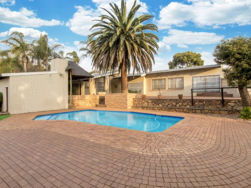Family entertaining and comfortable living in Horison Park, minutes from schools, malls and major routes — thatched Lapa with pool convertible to flatlet, five bedrooms, three baths.