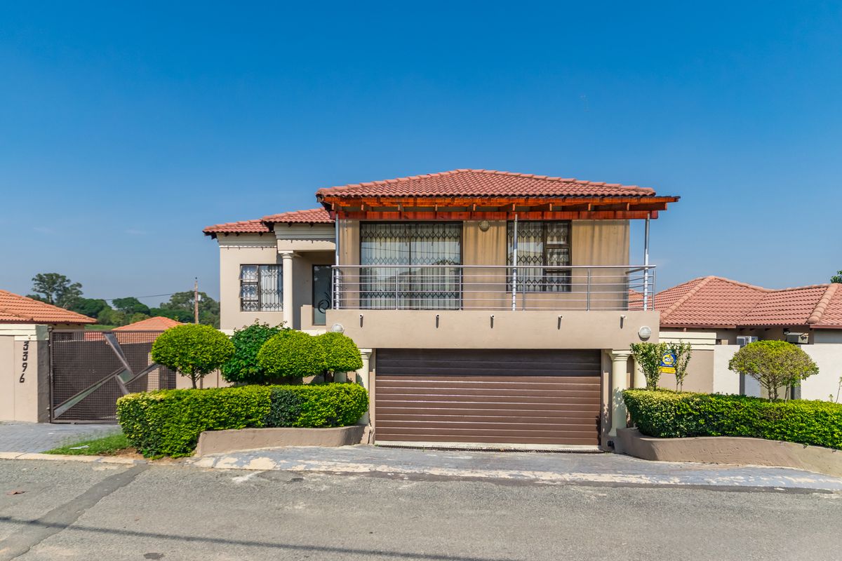 Enjoy township living in Cosmo City Extension 3, heart of Kasi, ideal for family entertaining with a built-in braai patio and balconies, five bedrooms, five bathrooms, garage.